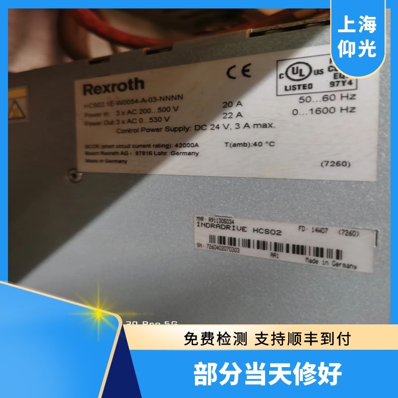 力士樂伺服放大器報(bào)警F8069維修案例:2022年4月7號(hào)下午13:25左右接到一個(gè)浙江寧波客戶電話,有臺(tái)力士樂伺服放大器報(bào)警F8069需要維修,完整型號(hào):HCS02-1E-W0054-A-03-NNNN,經(jīng)工程部確認(rèn)此故障是伺服驅(qū)動(dòng)器內(nèi)部+-15V直流出錯(cuò),內(nèi)部有+24V轉(zhuǎn)+-15V電路,它出現(xiàn)故障或內(nèi)部的集成芯片短路。需要更換HCS或CSB,客戶現(xiàn)場(chǎng)滿足不了伺服放大器修復(fù)條件,但是客戶又同型號(hào)備件,我司工程師協(xié)助客戶更換完好放大器后,設(shè)備正常運(yùn)行,因這段時(shí)間上海新冠疫情比較嚴(yán)重,維修件不能快遞到上海,和客戶溝通好把損壞的那臺(tái)力士樂伺服放大器HCS02-1E-W0054-A-03-NNNN快遞到安徽合肥讓我們駐廠工程師進(jìn)行維修。