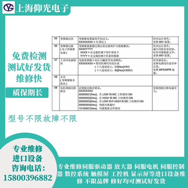 伺服驅(qū)動器維修 伺服電機維修 觸摸屏維修 變頻器維修