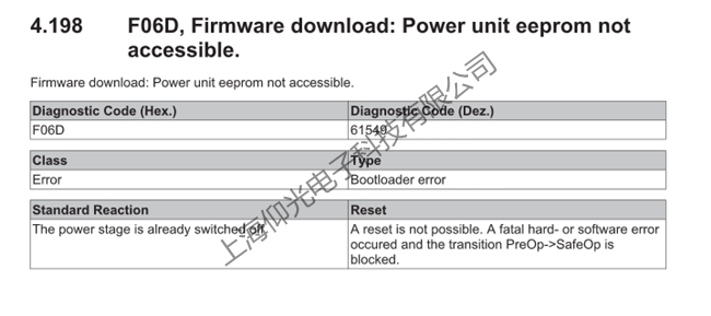倍福伺服驅(qū)動器報警F06D維修 F06D固件下載:電源單元 EEPROM無法訪問